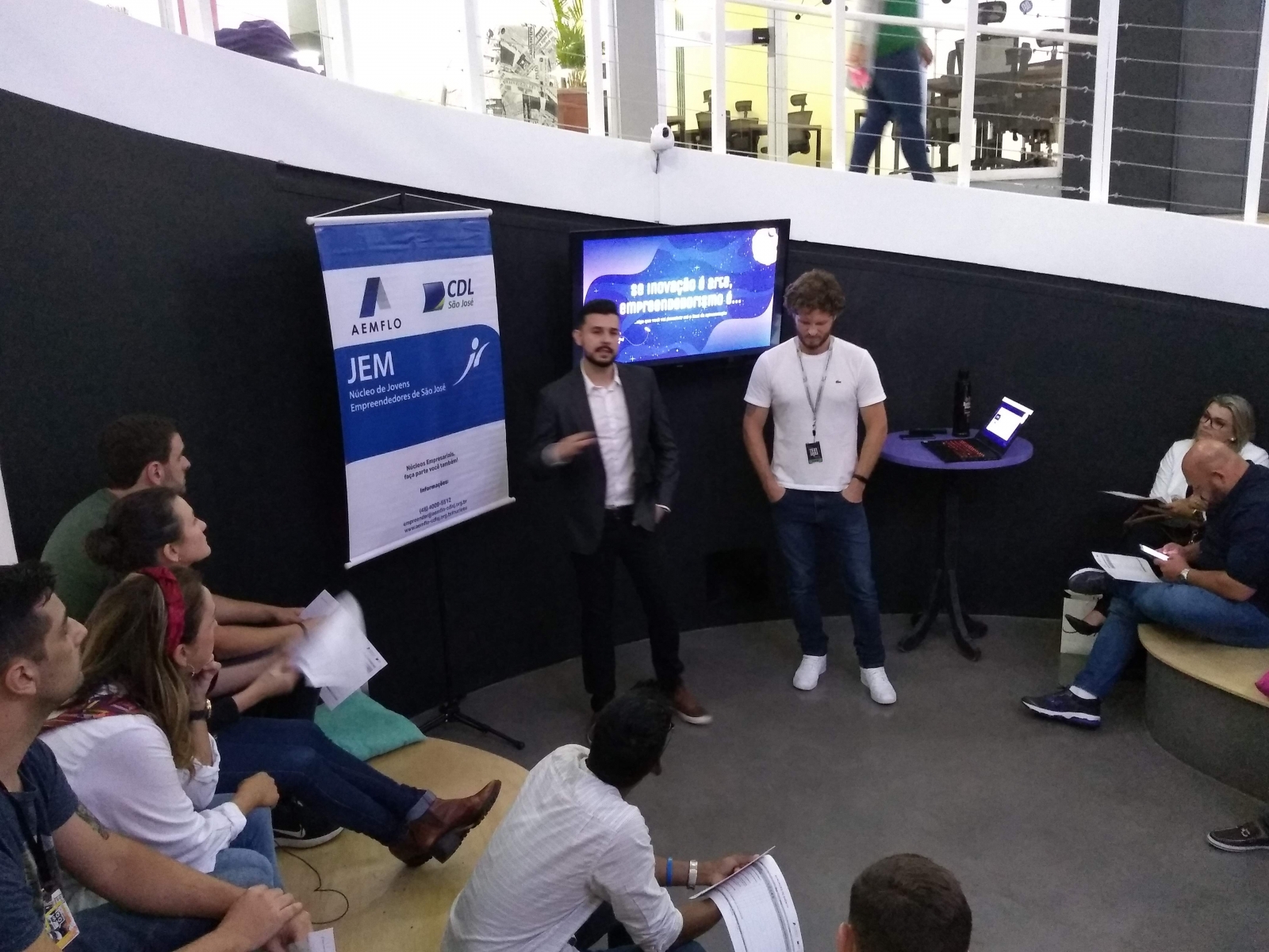 No dia 11 de junho, o Núcleo de Jovens Empreendedores de São José (JEM) reuniu mais de 40 pessoas, entre nucleados e convidados, para aprender sobre empreendedorismo com Christian Ruppenthal, sócio fundador do Centro de Inovação SOHO.